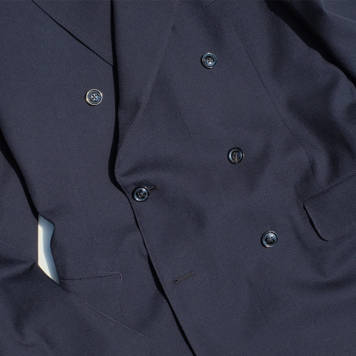 The double-breasted jacket, which has its roots in military officers' uniforms, is said to have been created so that the direction of the seam could be changed depending on the direction of the outside wind.