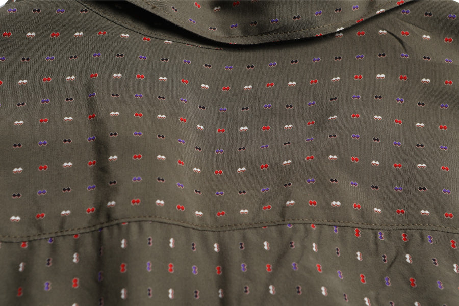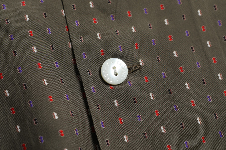High-quality discharge print that reproduces the geometric patterns found in vintage items.