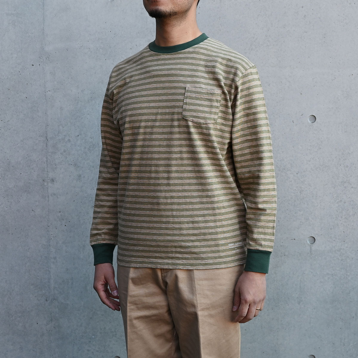 The border on the chest pocket is arranged randomly with the pattern shifted.