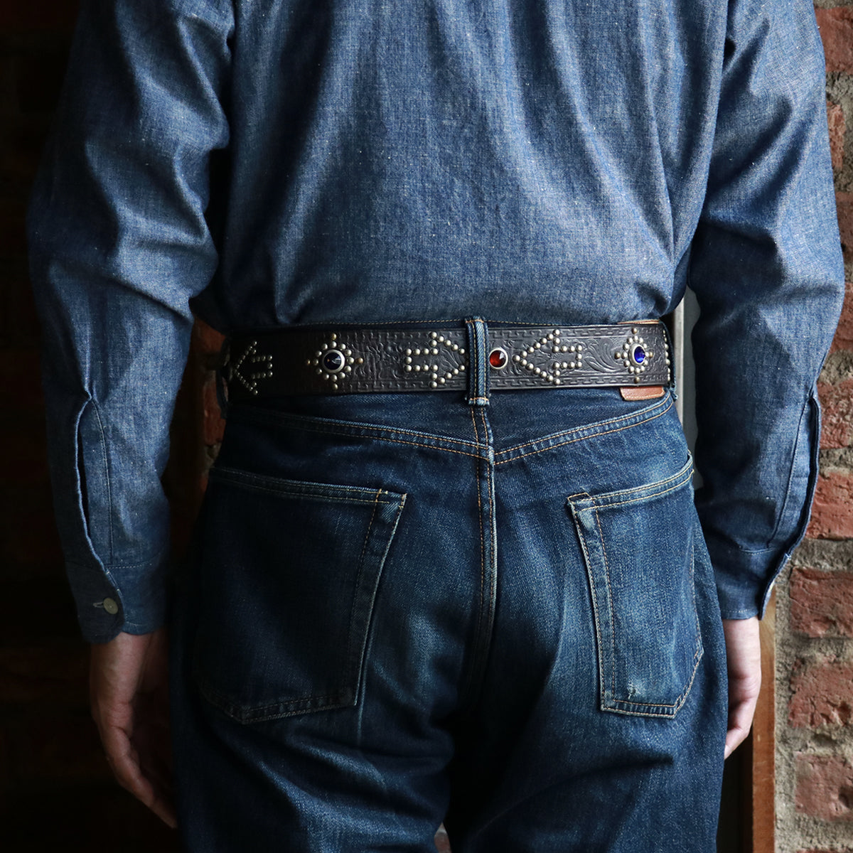 "RAWHIDE" studded jewel belt produced by VINTAGE SHOP "ROCK A HULA" in Niigata.