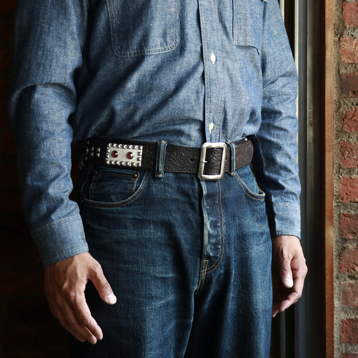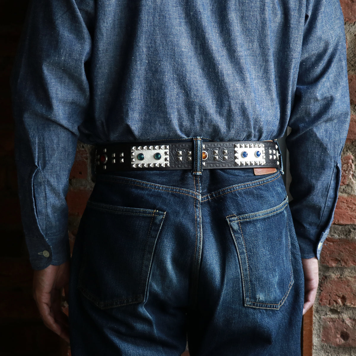 "RAWHIDE" studded jewel belt produced by VINTAGE SHOP "ROCK A HULA" in Niigata.