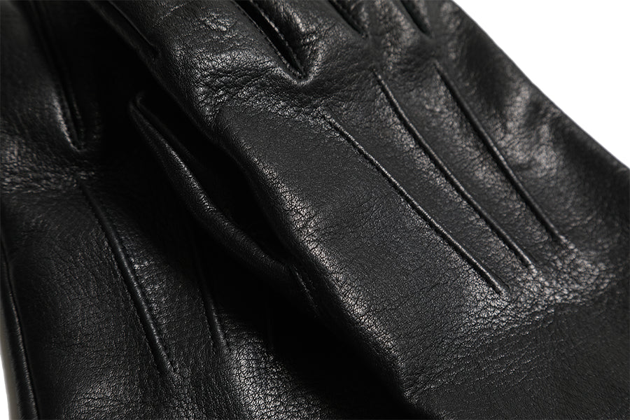 指先の自然なフィット感を高めるべく、人差し指の切り替えも無くし、手の甲とひらを革一枚取りしているのも特徴です。