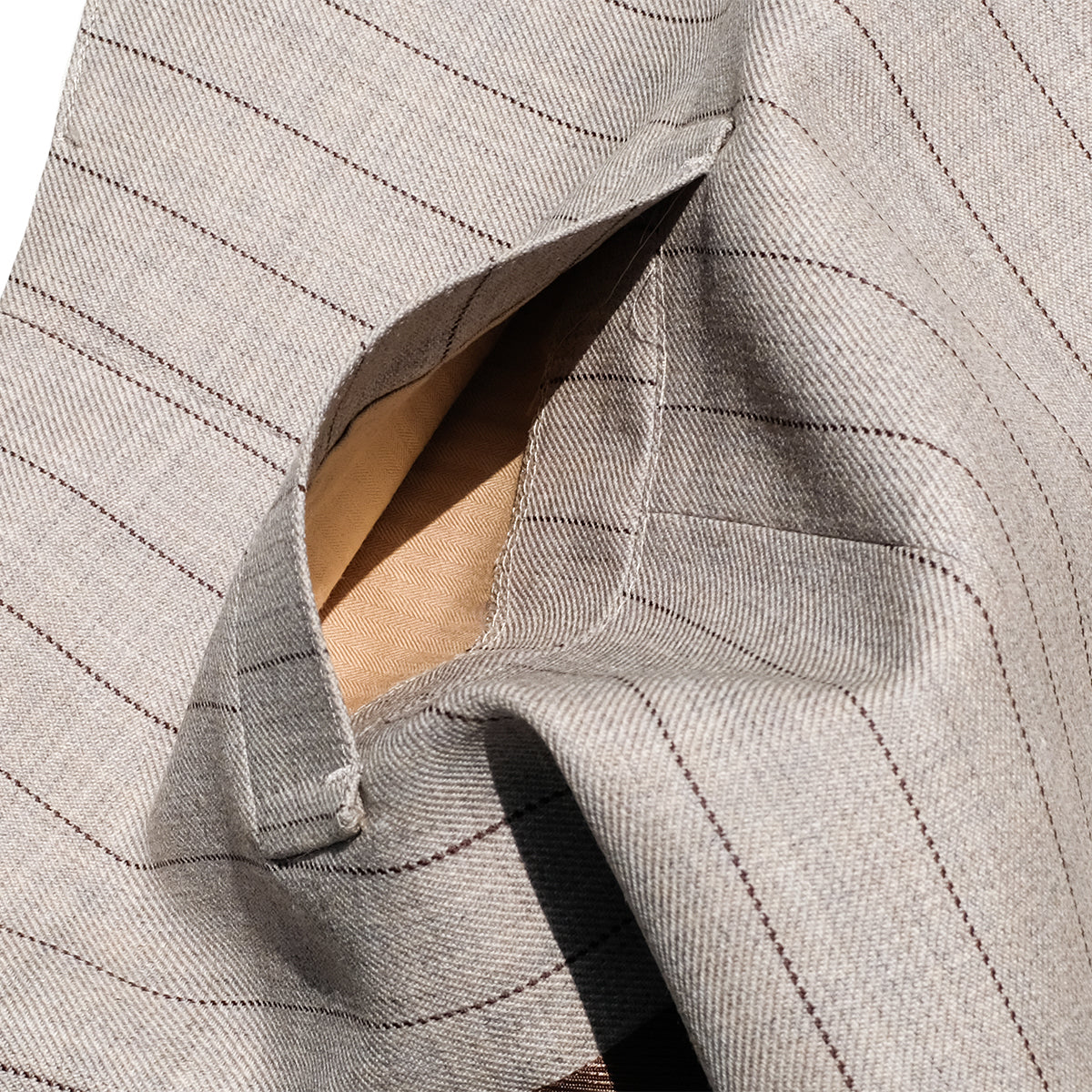 When wearing the jacket, depth is created from the lapel to the shirt below the V-zone, and the three-dimensional chest makes the upper body look beautiful. The natural waist shape and shoulder seating that you feel when wearing the jacket are the result of the experience of experienced pattern makers and specialized sewing factories.