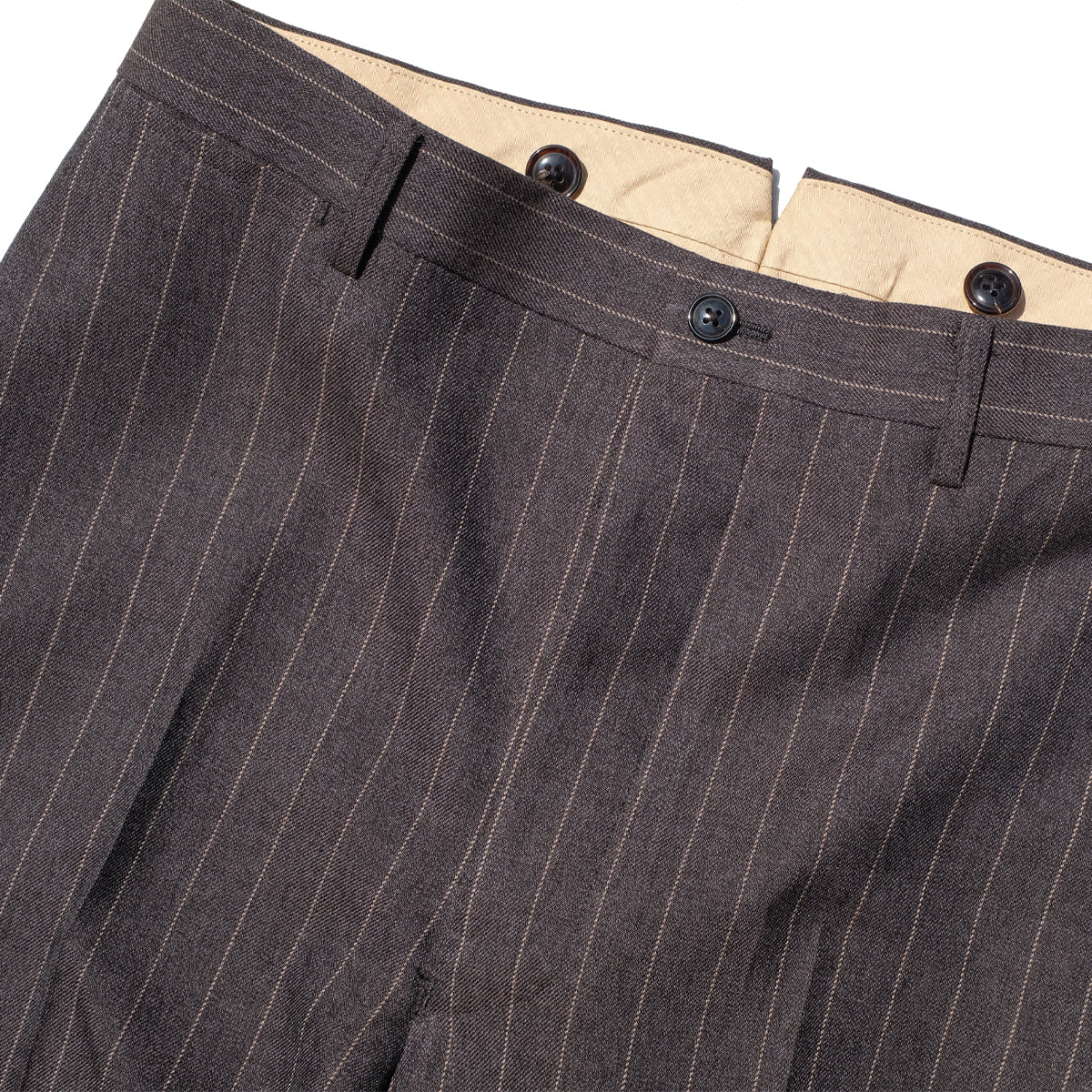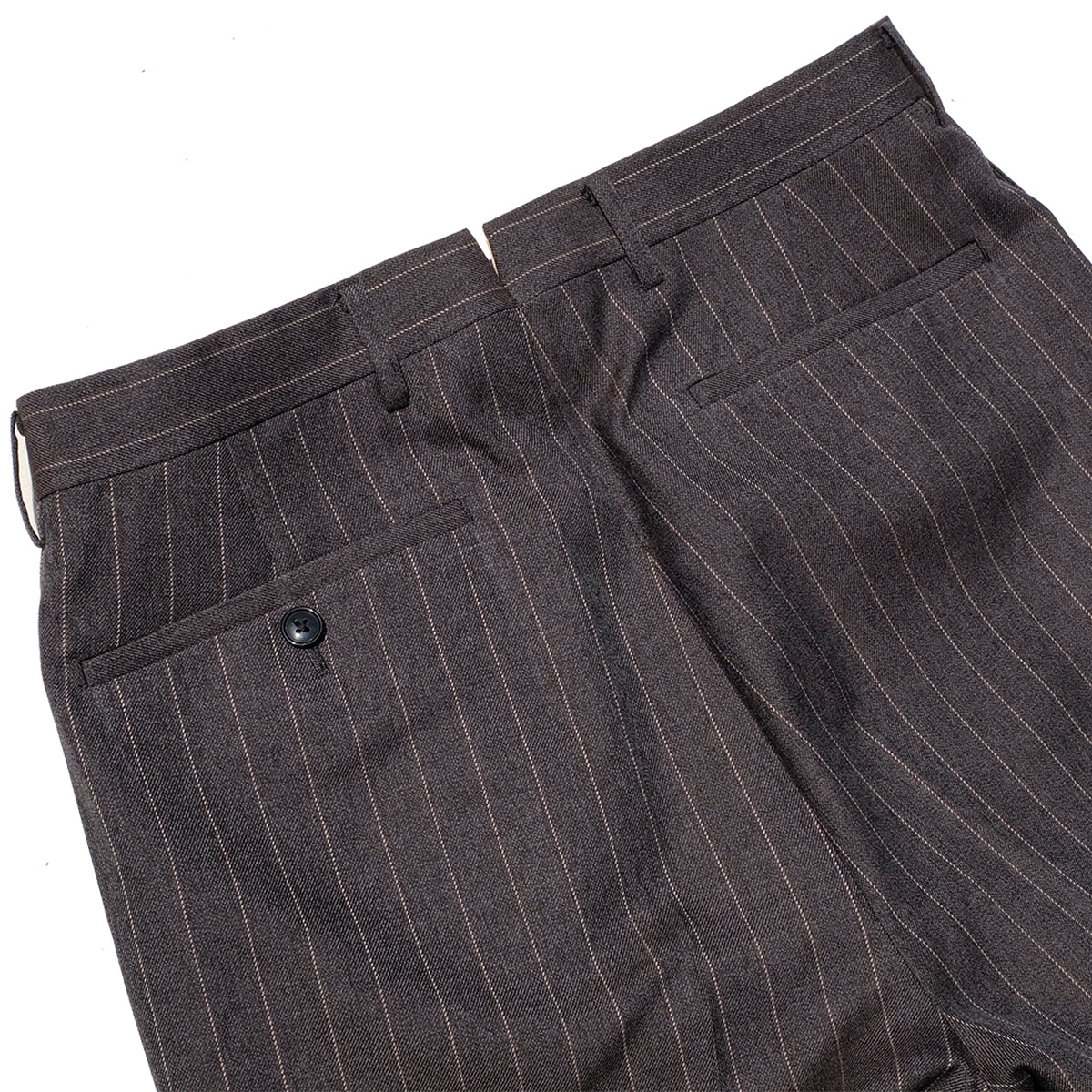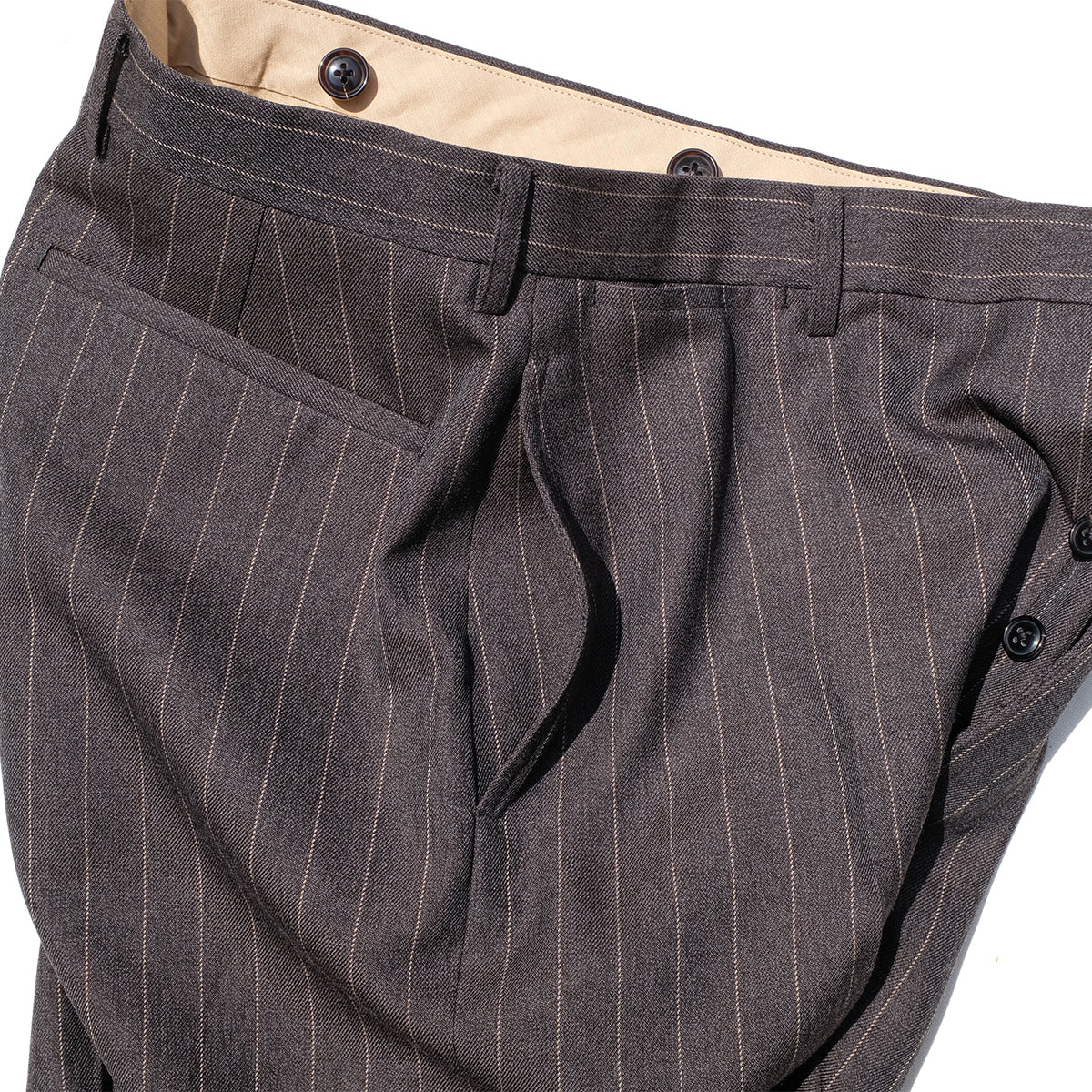 The back is split so you can adjust the size, the back of the belt has a fine herringbone twill pattern, and the suspender buttons give the trousers a modern twist.
