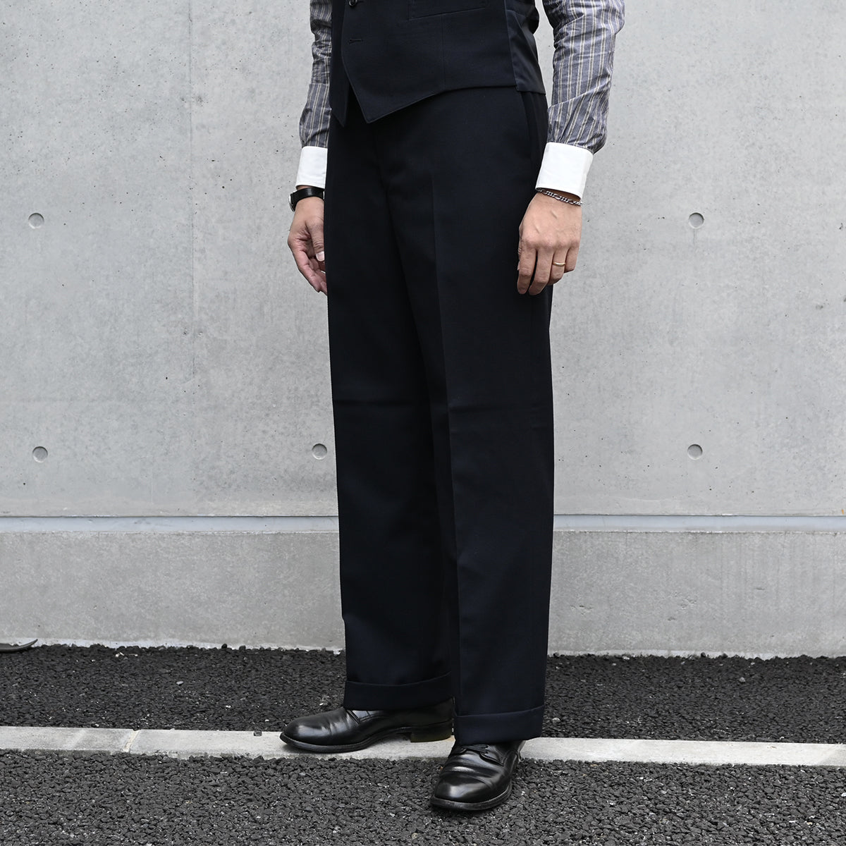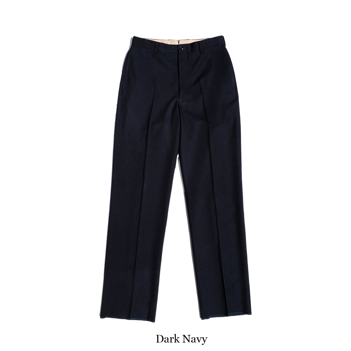 Both single and double hems are available. Made to order from navy wool by Miyuki Keori, a high-end textile manufacturer founded in 1905.