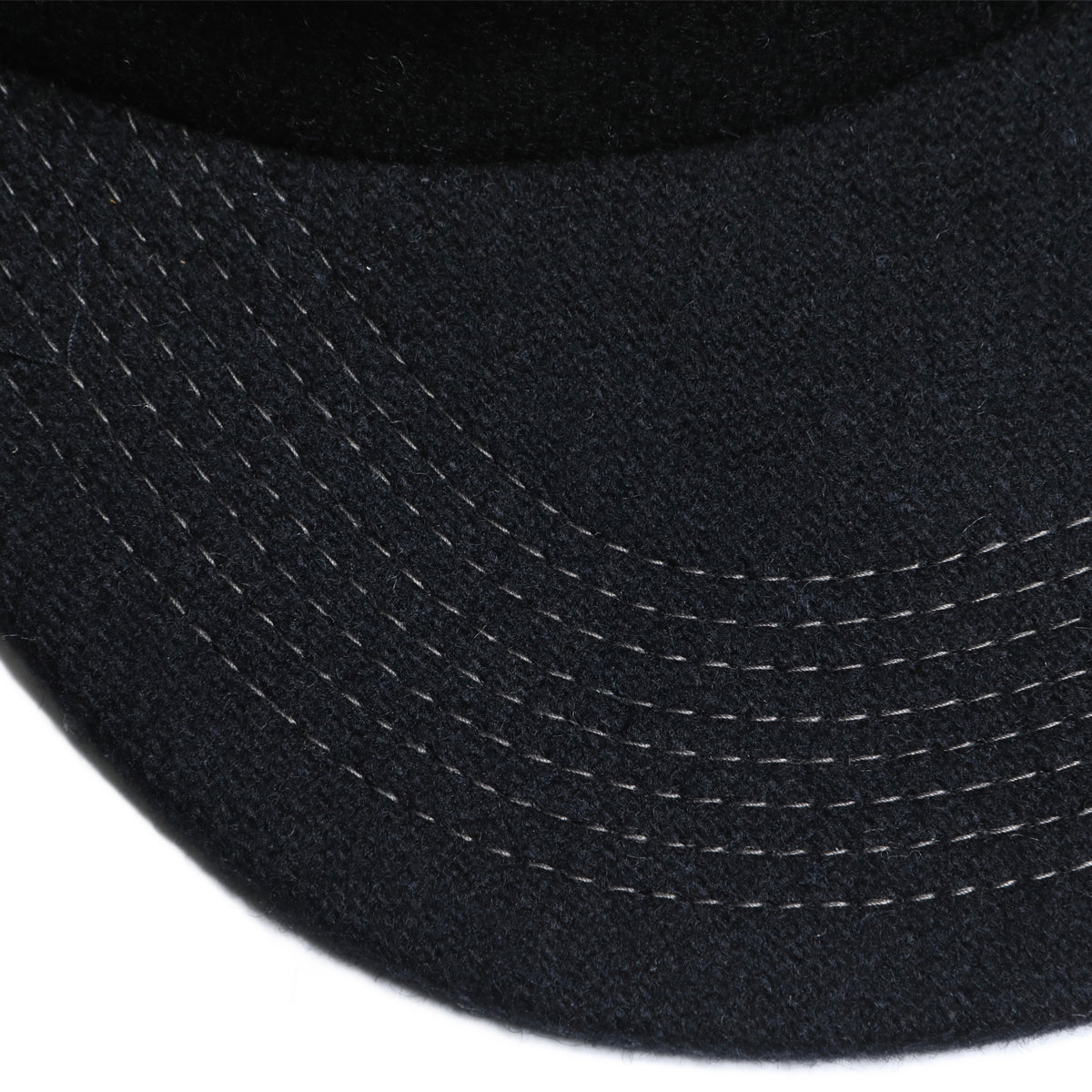 A wool baseball cap with a shallow, rounded shape that gives it a classic feel.
