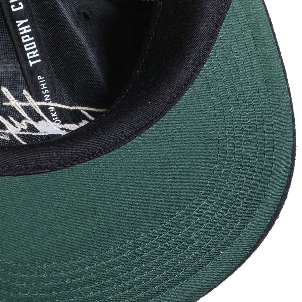 The back of the brim is switched to green satin, and original logo tape is placed on the reverse side.
