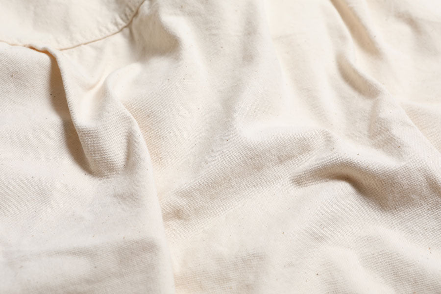 The weft thread is dyed gray, which goes very well with indigo.