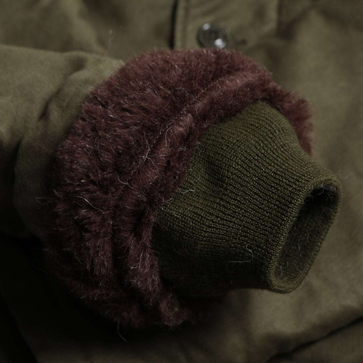 Based on the vintage N-1 deck jacket, this item is made in Takanoguchi, Japan, a region famous for its boa and fur.
