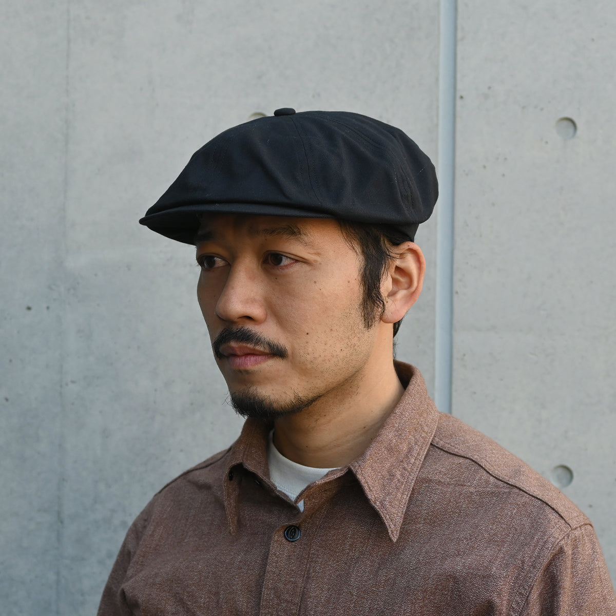 The silhouette is somewhere between a newsboy cap and a hunting cap, with a puffy brim and crown and no snap buttons.