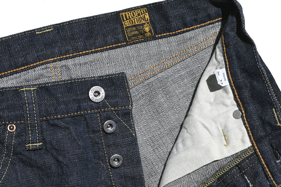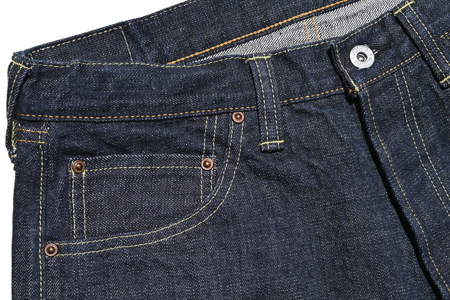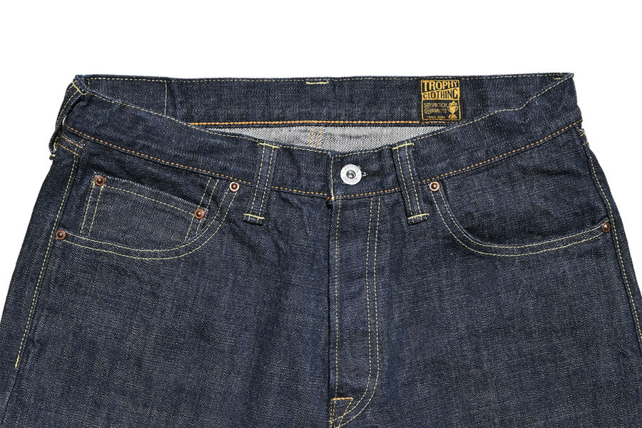 Features off-white lining, 1605 iron buttons, engraved copper UFO rivets, and deerskin leather patch.