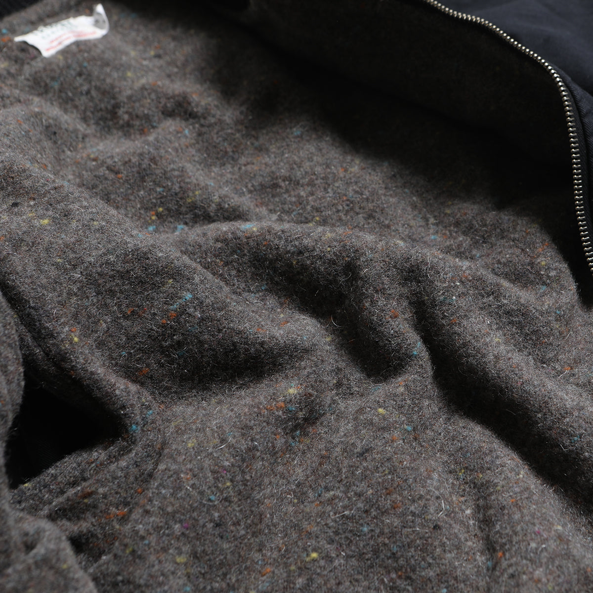 The blanket lining is made from recycled wool, giving it a thick, warm texture.
