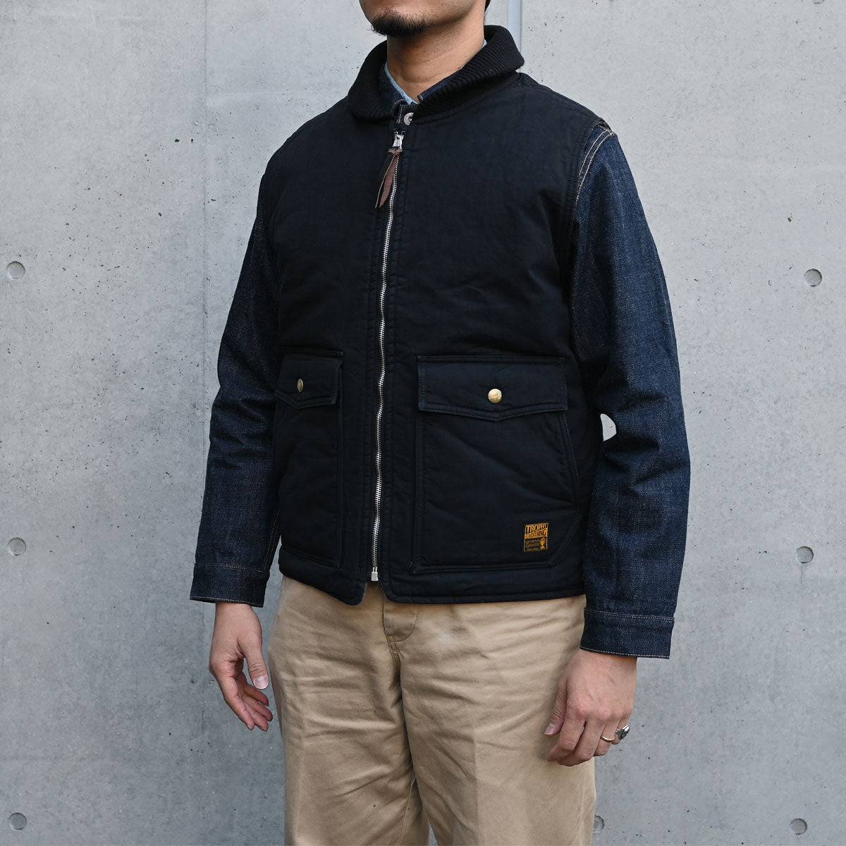 After one wash, the stitching has lost its stiffness and puckered, the folded-over collar rib has been set at a high tension, and it has highly functional two-way pockets that also function as hand warmers.
