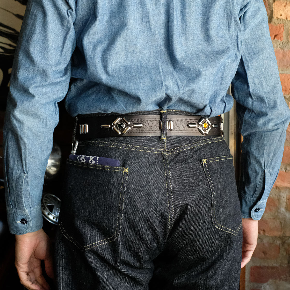 "RAWHIDE" studded jewel belt produced by VINTAGE SHOP "ROCK A HULA" in Niigata.