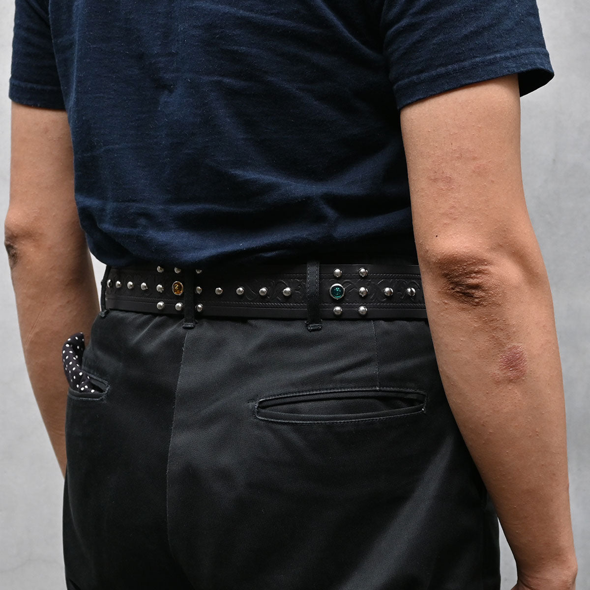"RAWHIDE" studded jewel belt produced by VINTAGE SHOP "ROCK A HULA" in Niigata.