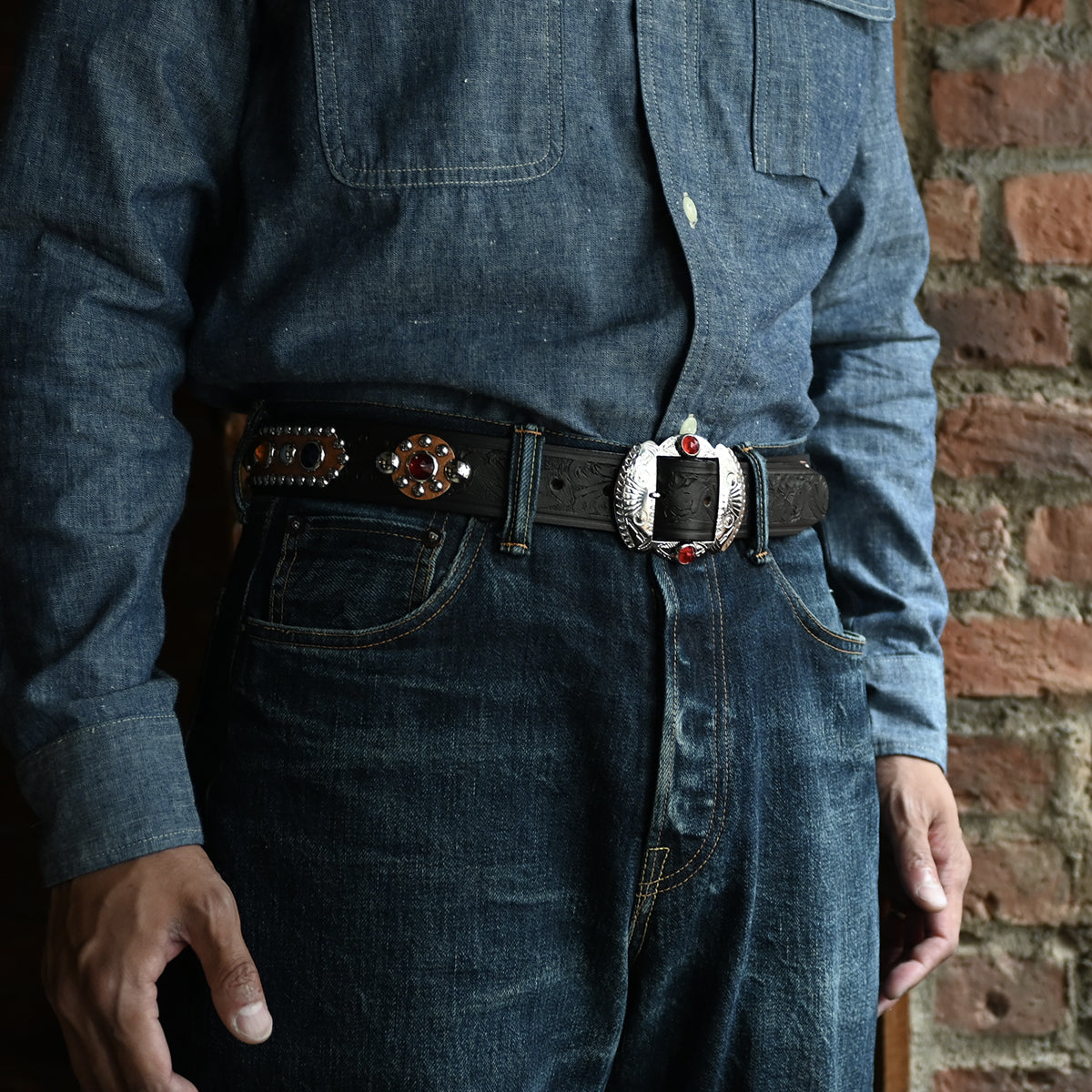 "RAWHIDE" studded jewel belt produced by VINTAGE SHOP "ROCK A HULA" in Niigata.