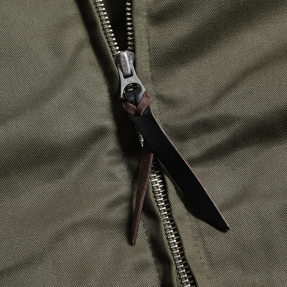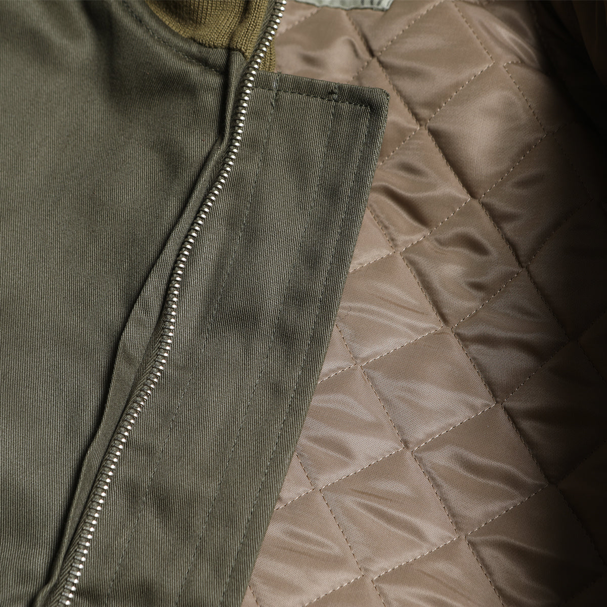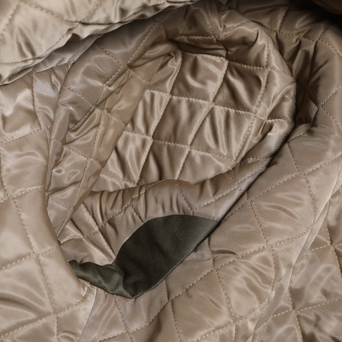 Lightweight, densely woven cotton chino cloth with quilted lining.
