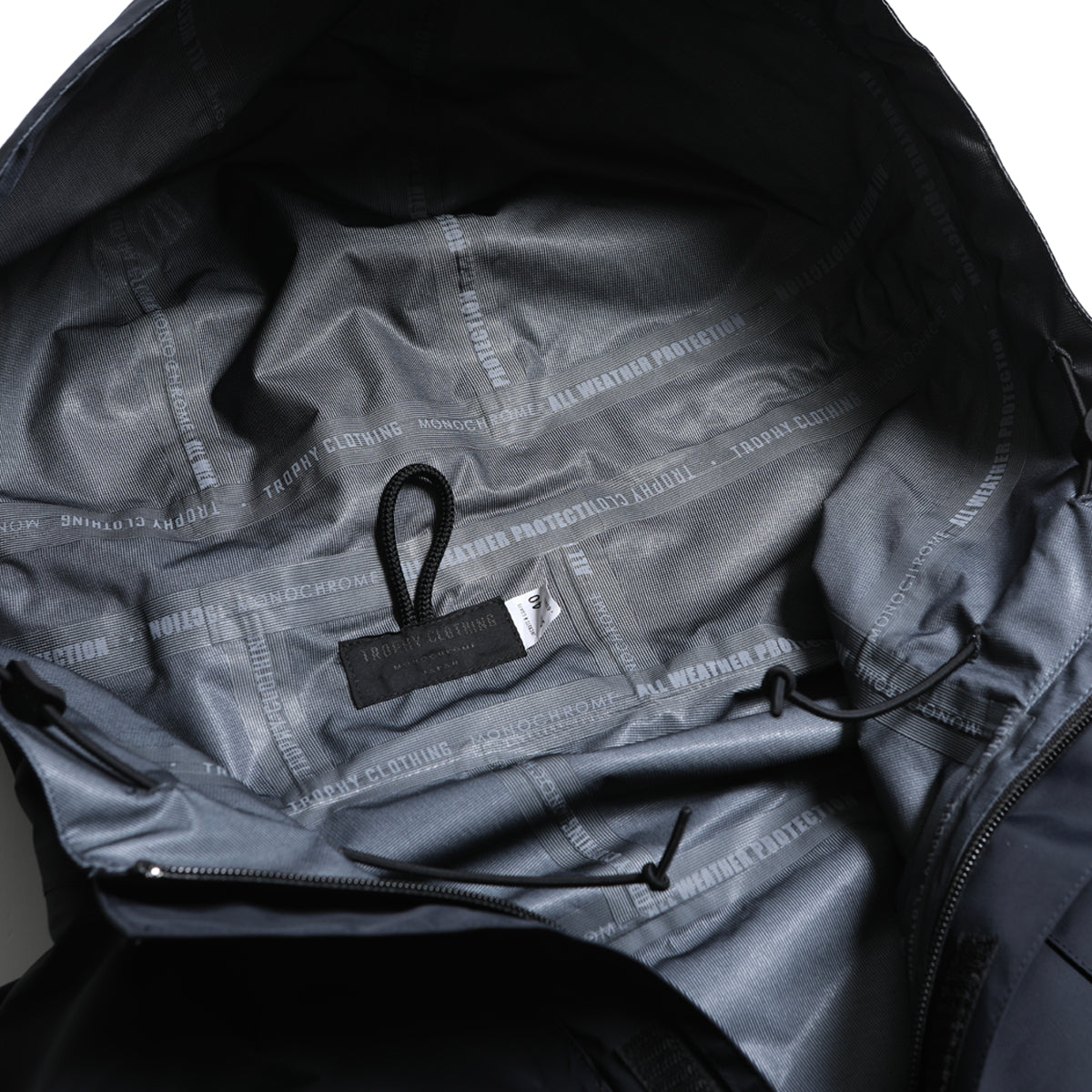 The monochrome logo seam tape and YKK waterproof zippers make this a completely waterproof rain parka.