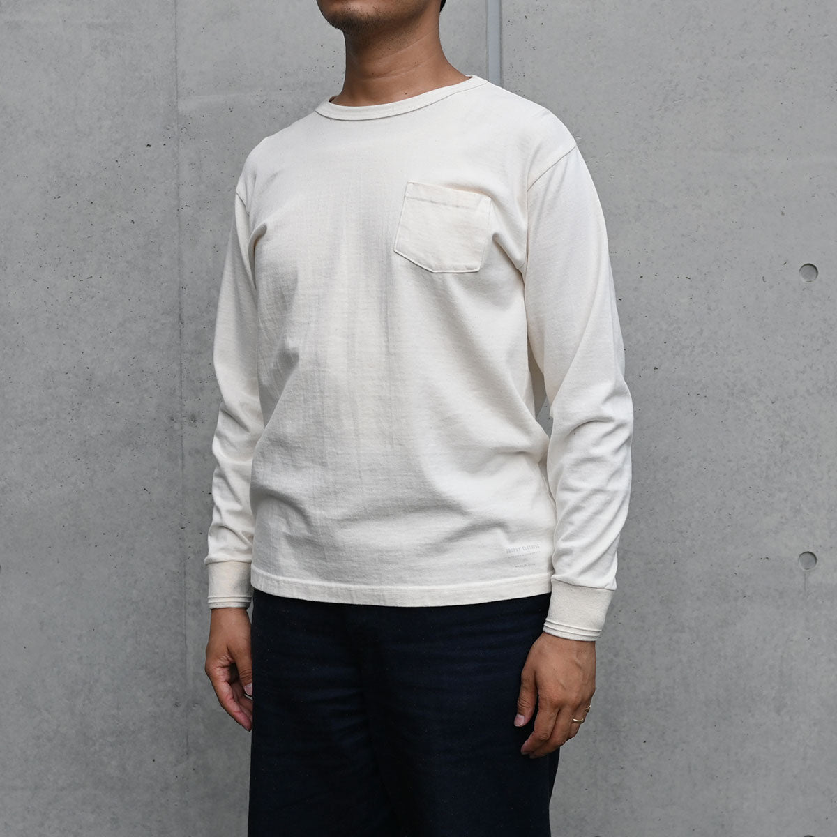 表側を20単糸、裏側を30単糸の太さ違いの糸を使用した9.5ozオリジナル天竺。