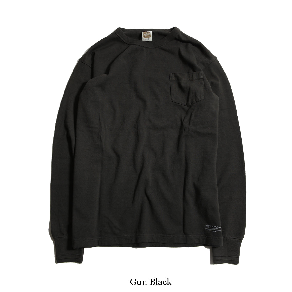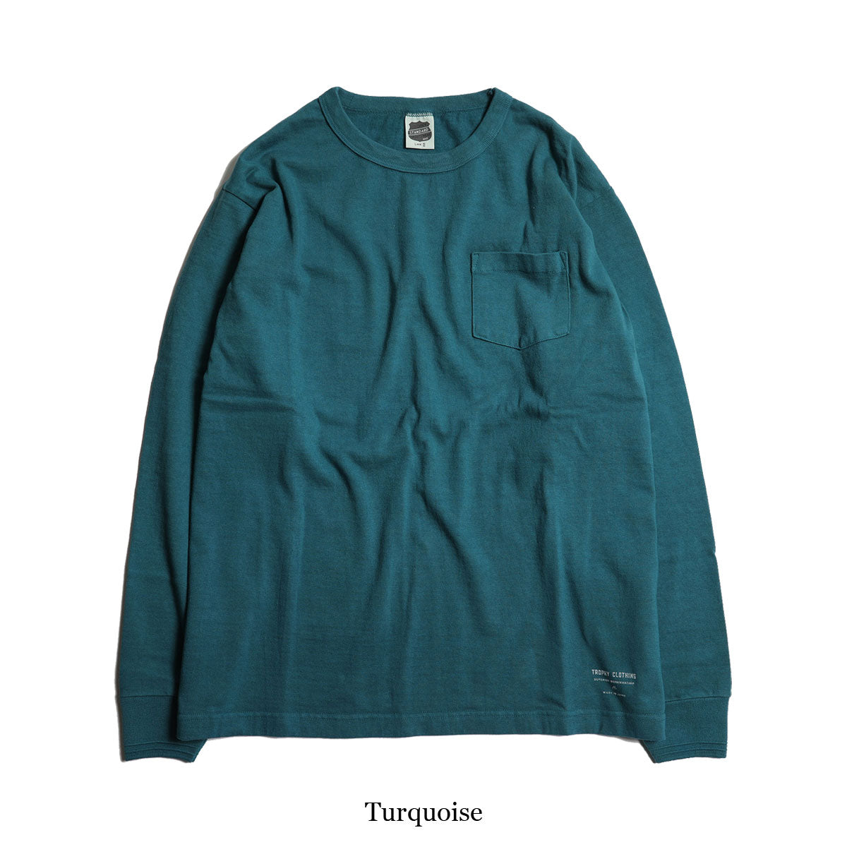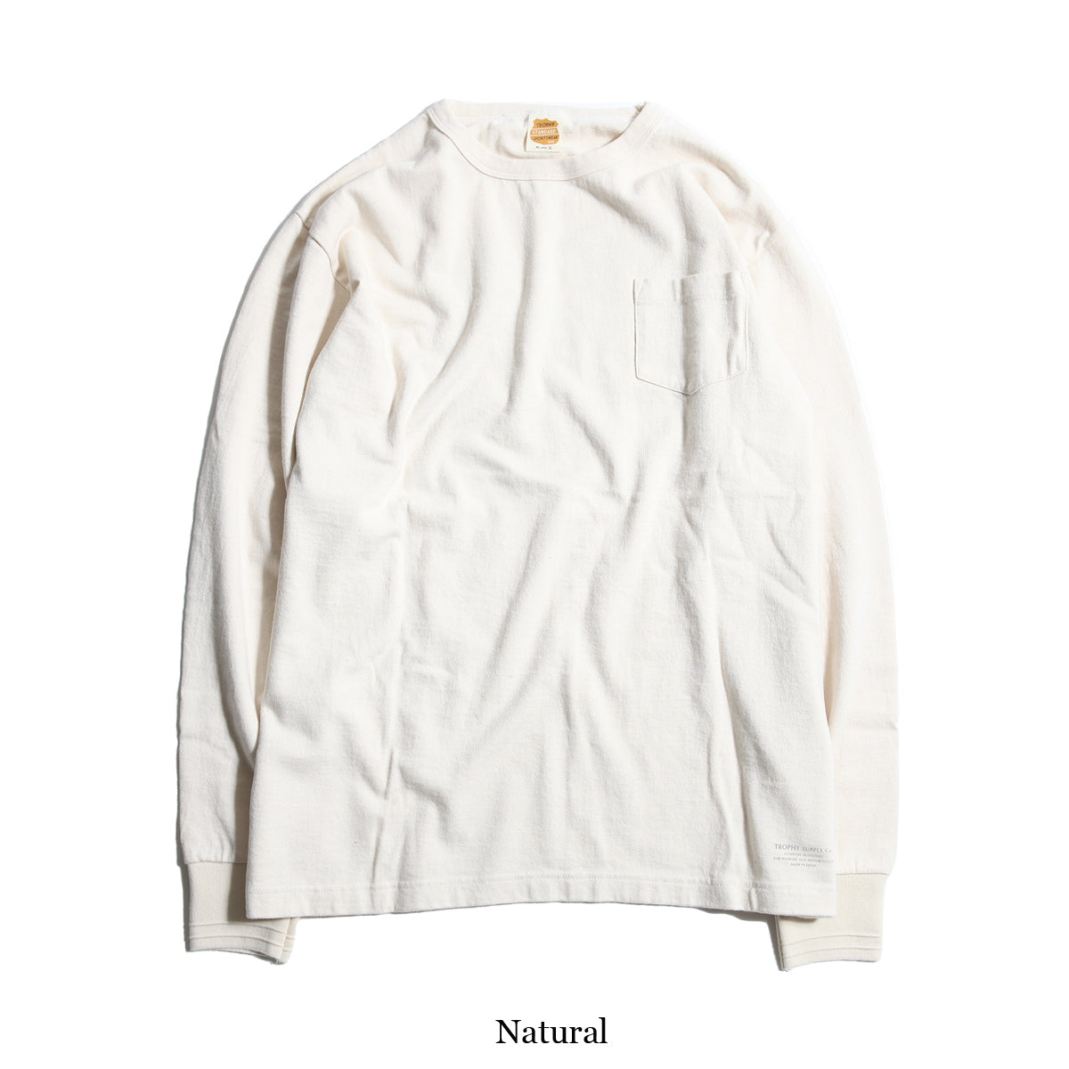 左胸にポケット、裾にはブランドネームを転写プリントしています。
