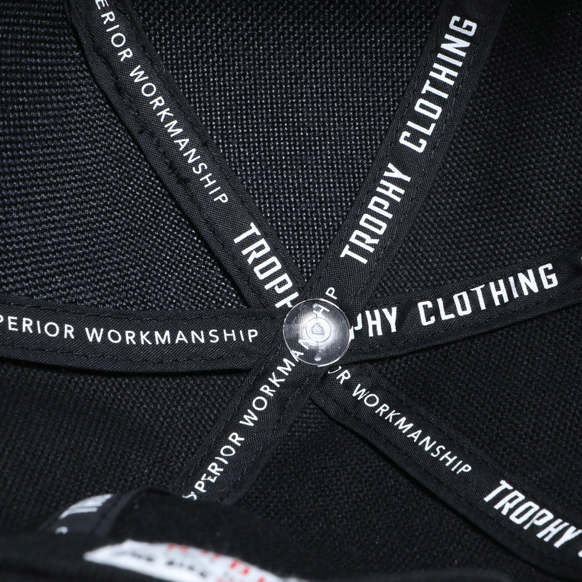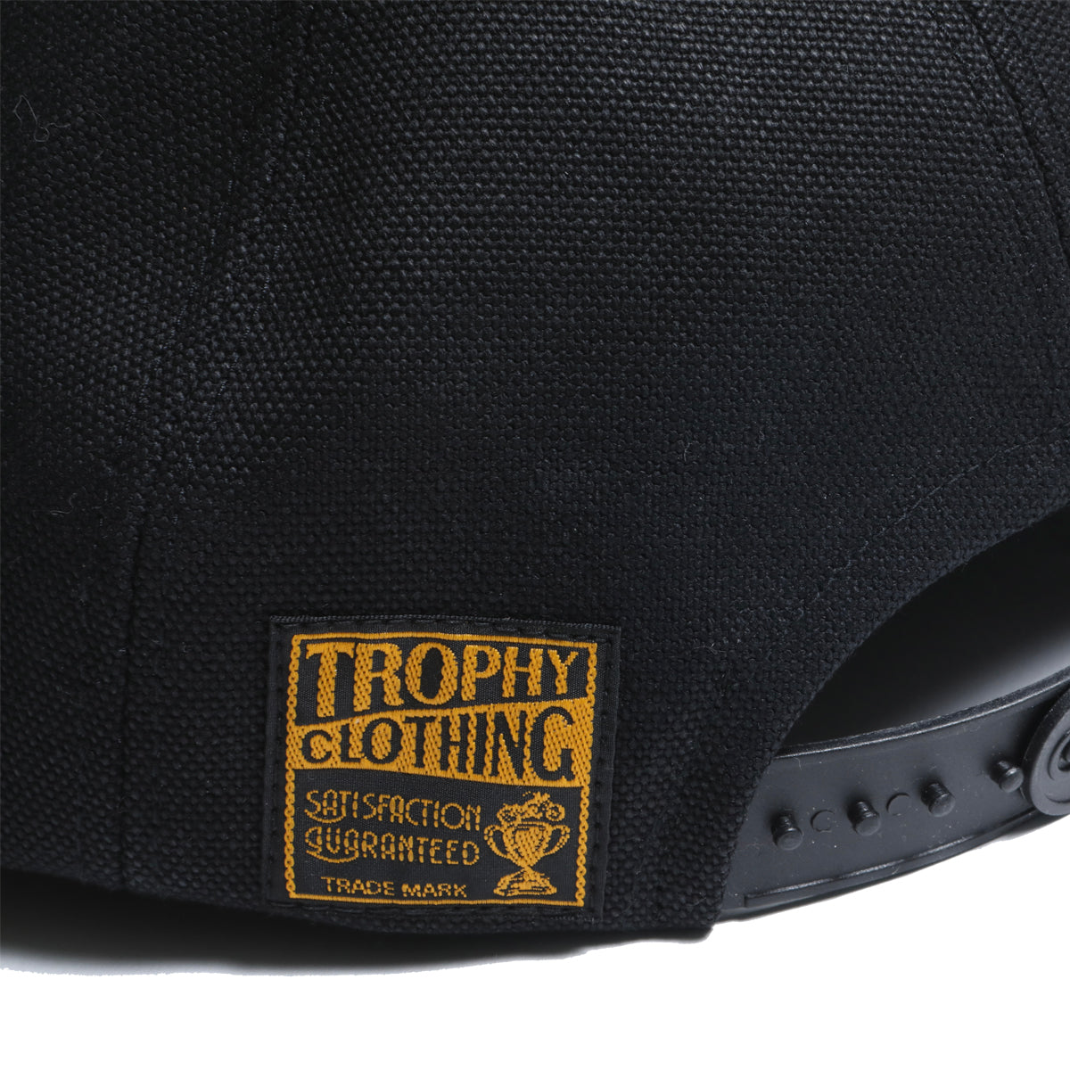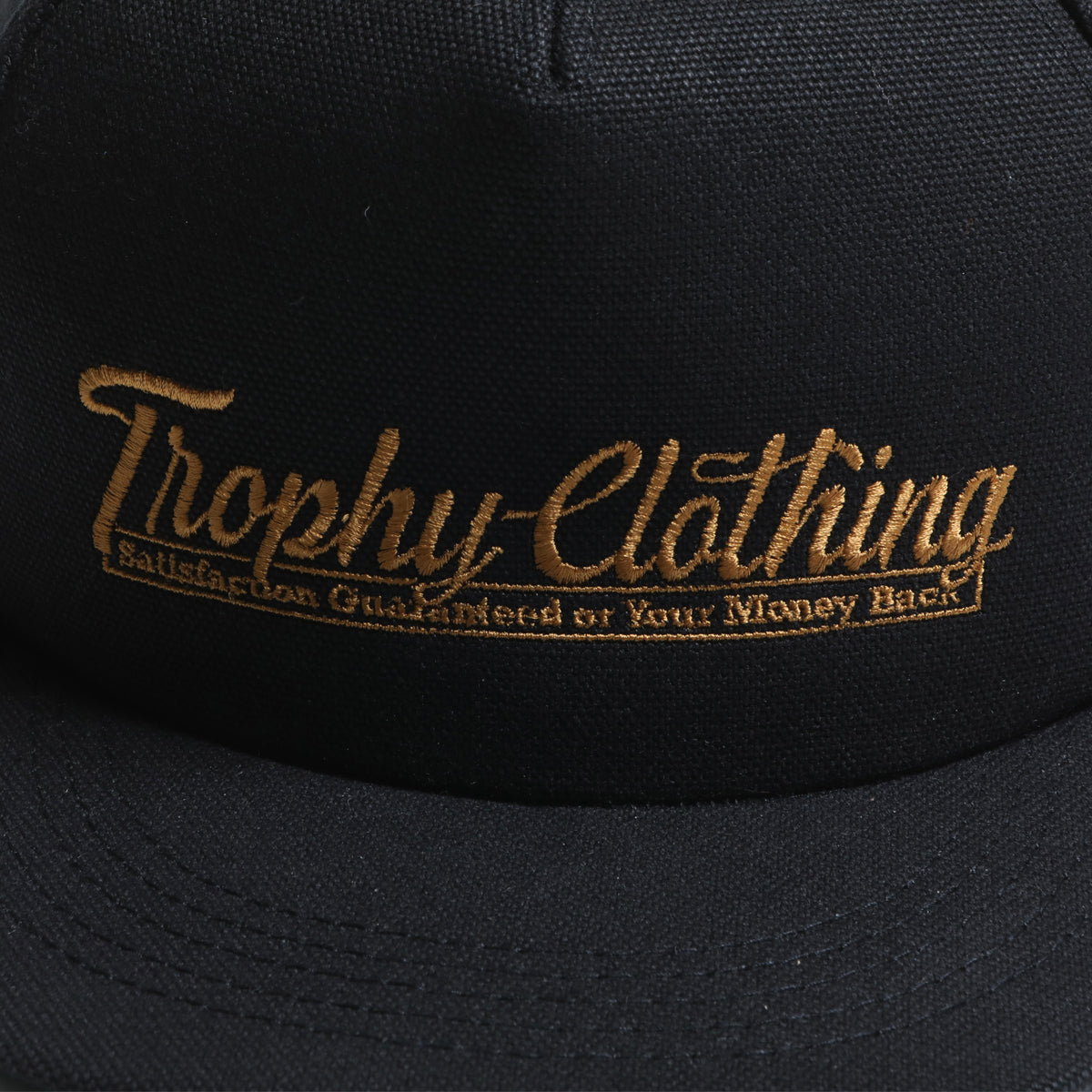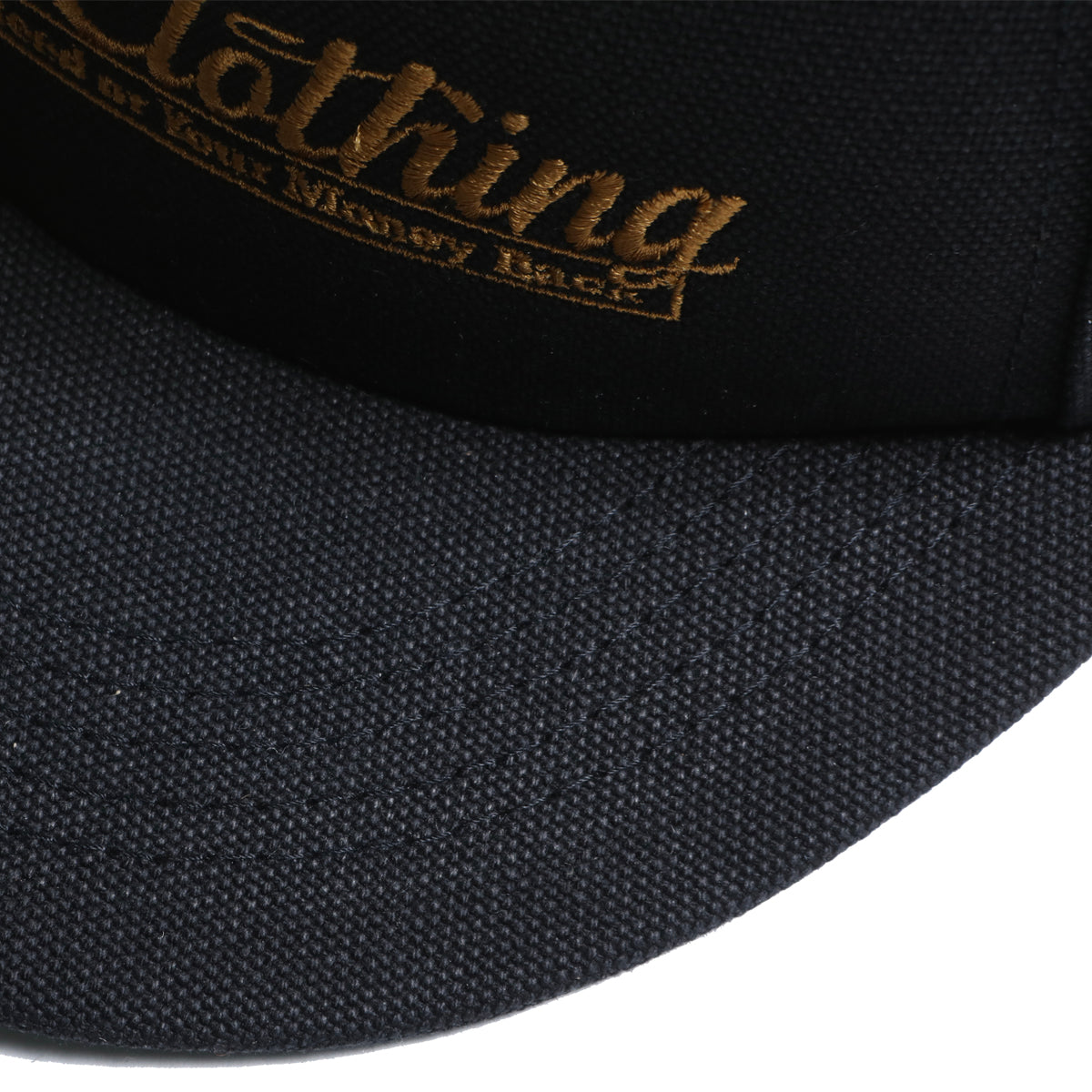 The hat body is made using an original wooden last, the panels have tape printed with the logo, and the inside of the brim is made of green satin reminiscent of American baseball caps.
