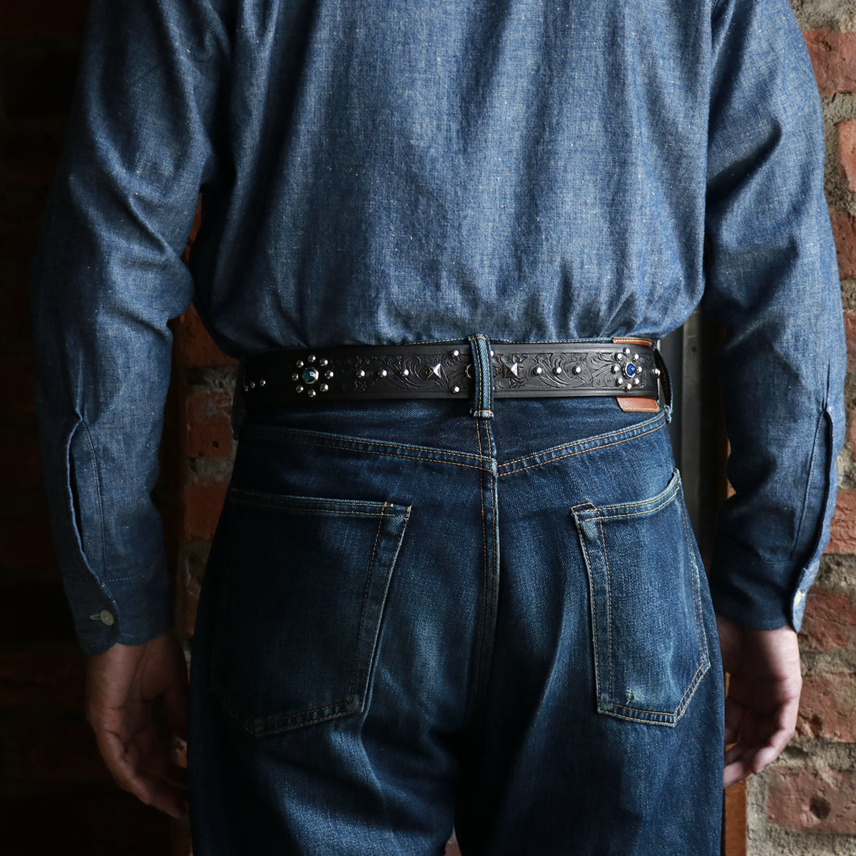 "RAWHIDE" studded jewel belt produced by VINTAGE SHOP "ROCK A HULA" in Niigata.