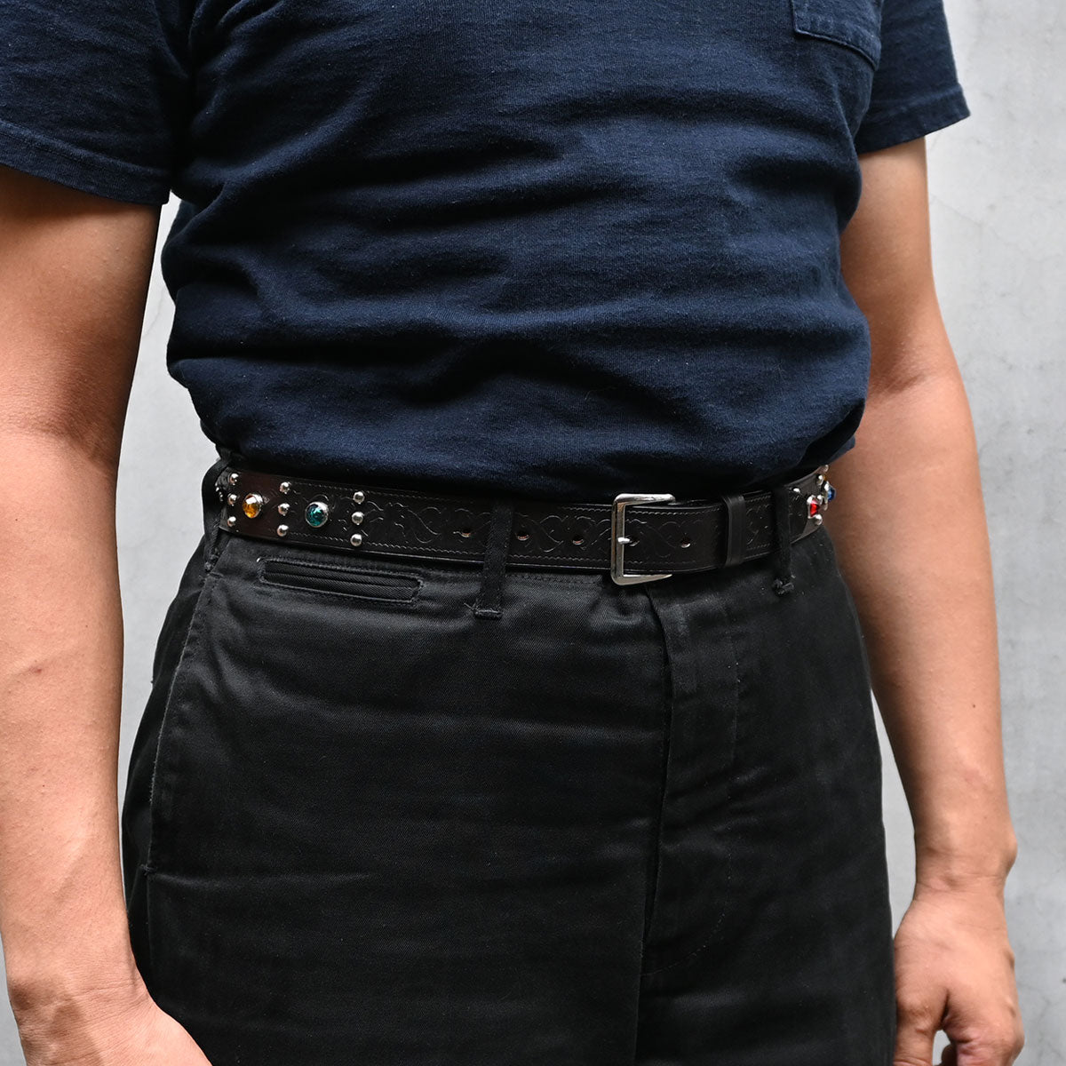 新潟のVINTAGE SHOP "ROCK A HULA"製作の"RAWHIDE(ロウハイド)"スタッズジュエルベルト。
