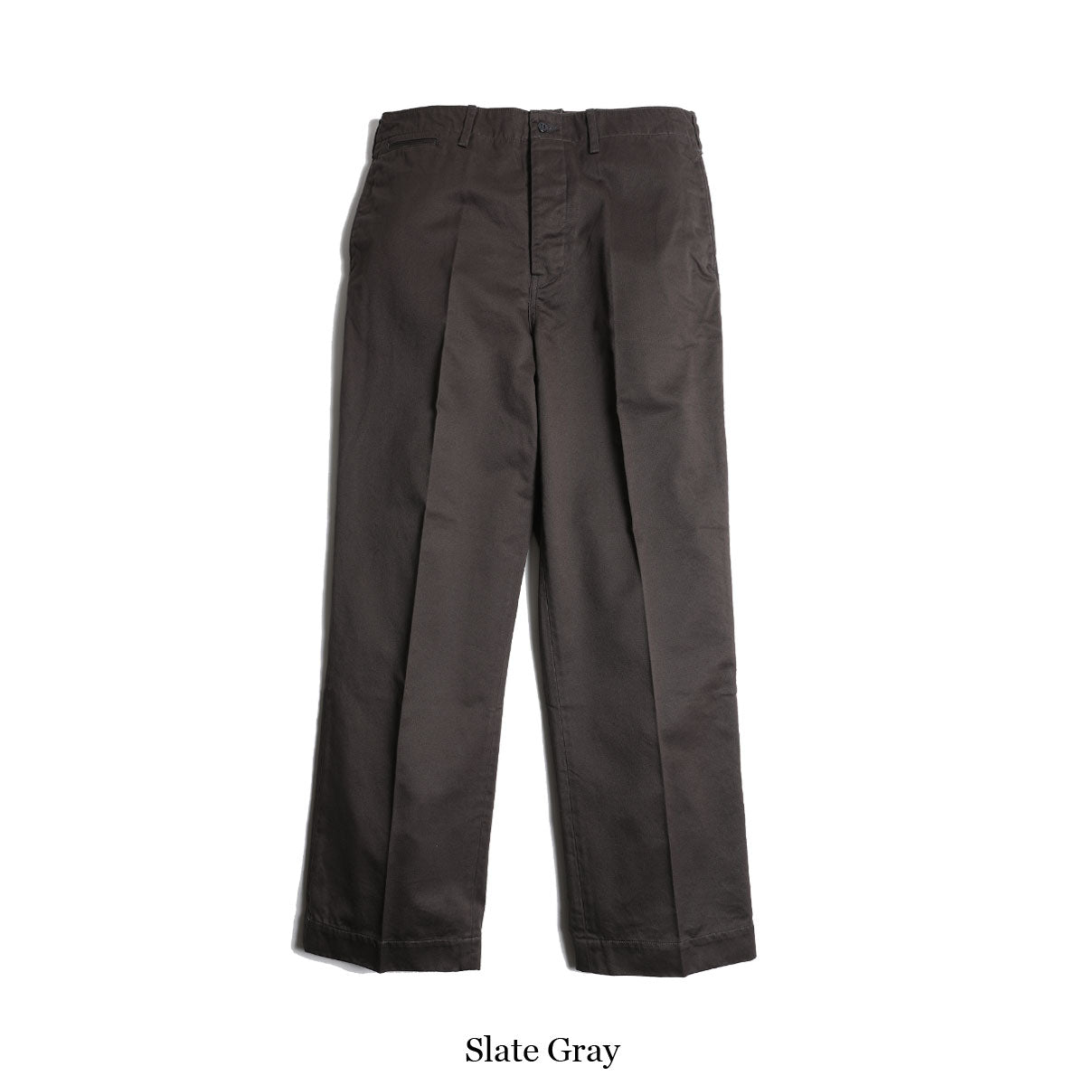オリジナル染色したスレートグレー、赤みの加わったヴィンテージライクなカーキの2色展開。