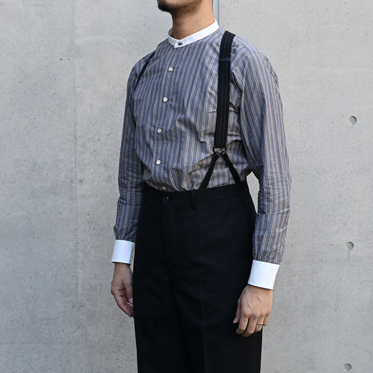 1930年代まで主流だったデタッチャブルカラー(取り外し可能なシャツ衿)を当時の仕様を参考に再現。 洗濯、洗剤の技術向上と共に市場から姿を消していくディティールです。