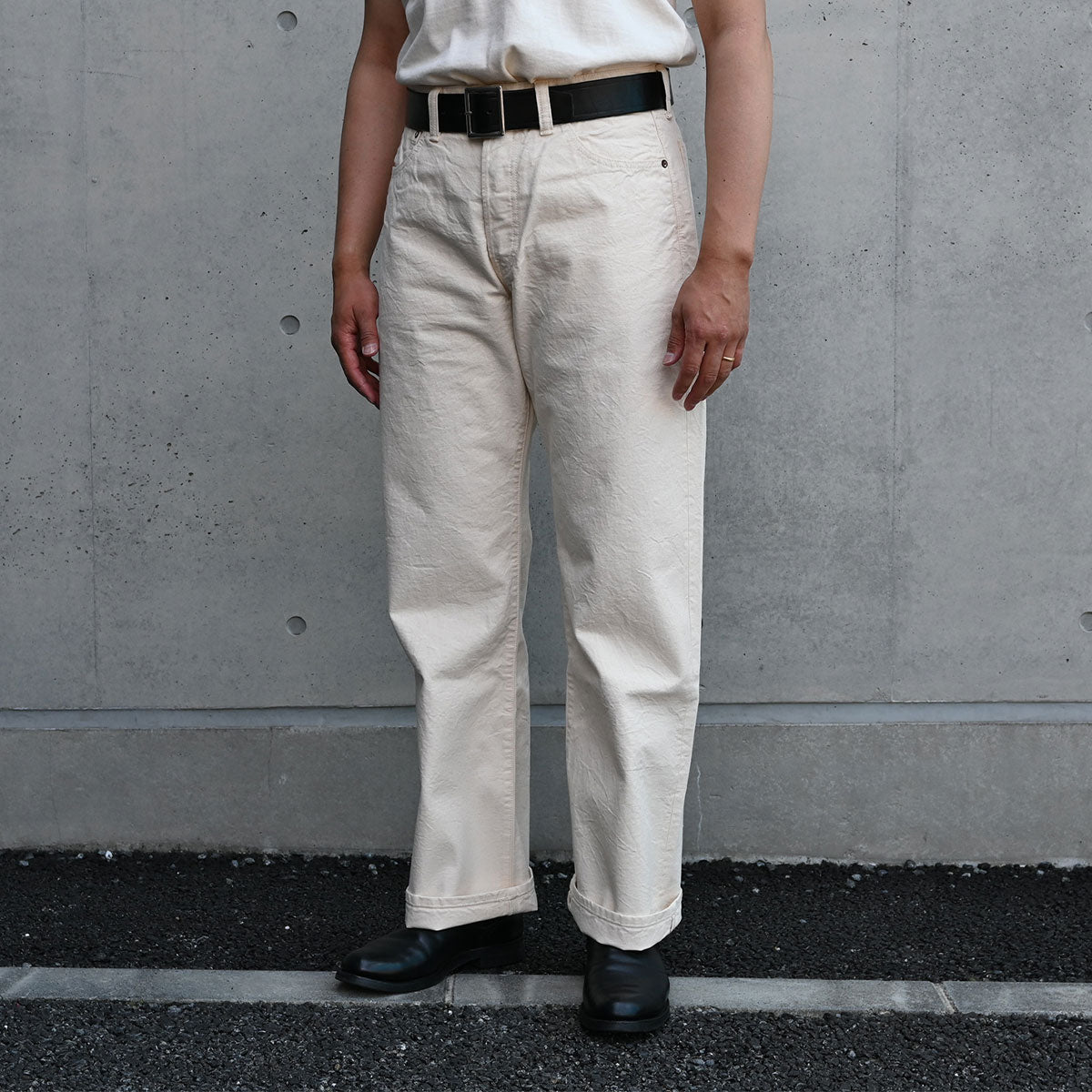 精錬漂白をせずにネップやタネが残った生成りの状態で縫製しており、より粗野な雰囲気となっています。
