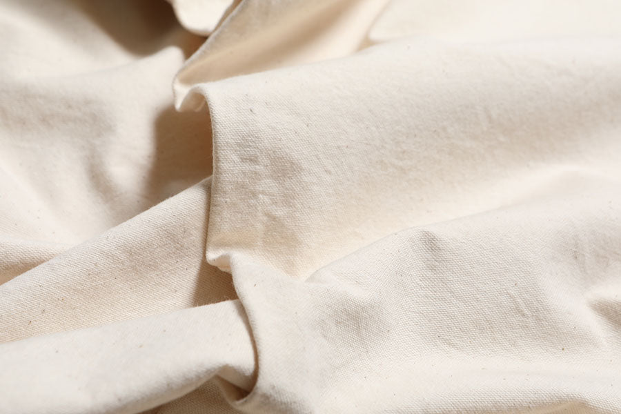 経糸10番引き揃えと緯糸7番を旧式力織機で織り上げた未染めのナチュラルダック。