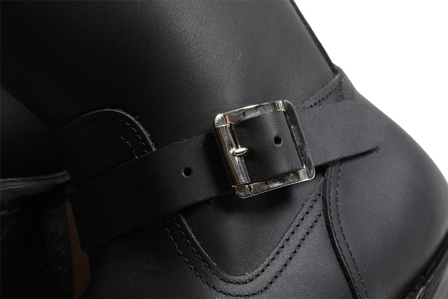 アウトソールには、クラシカルかつグリップの良いビルトバック製セパレートソール、金型を作り製作したニッケルのプレスローラーバックルやシャフトの深く切り込まれたV等、エンジニアブーツの完成系といっても過言ではありません。