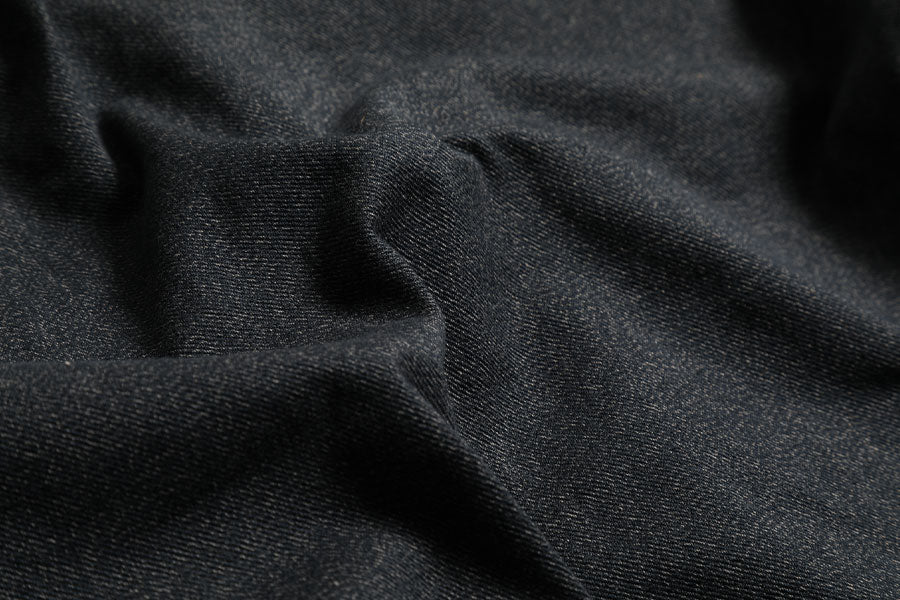 経糸に撚り杢、太番手の緯糸で構成された11.2oz撚り杢ツイル素材。