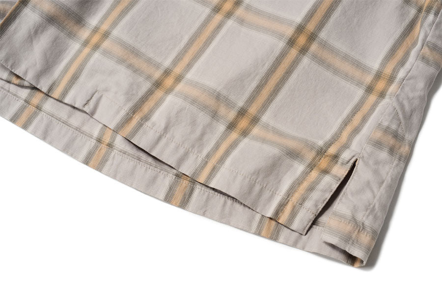 衿先の長いロングポイントカラーはワークシャツと異なる、フラップポケットは柄合わせ、背面のショルダータック、裾開きの切り替え、袖裏から脇まではパイピング処理、クラシカルなディティールを持ちながらもサンフランシスコのヒップカルチャーが香ります。
